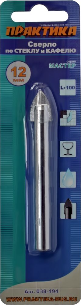 Сверло по стеклу ПРАКТИКА 12х100 мм "Мастер" в Комсомольск-на-Амуре