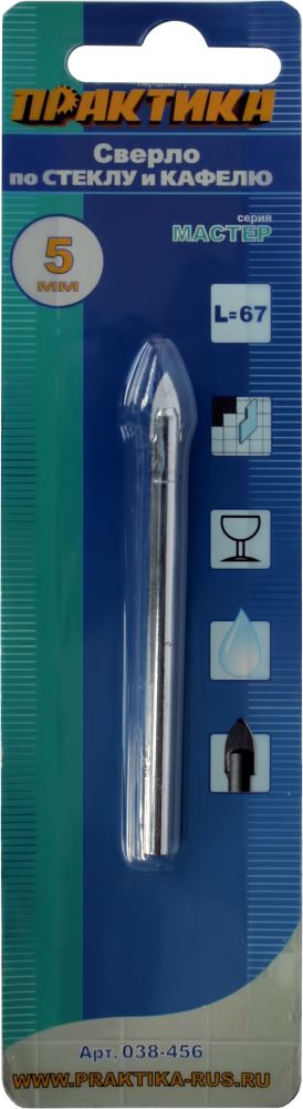 Сверло по стеклу ПРАКТИКА 5х67 мм "Мастер"
