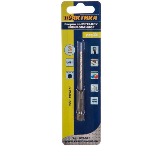 Сверло по металлу ПРАКТИКА HEX 1/4" 3,0х81 мм в Комсомольск-на-Амуре
