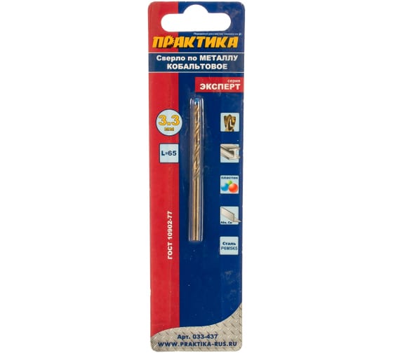 Сверло по металлу ПРАКТИКА кобальтовое 3,3х65 мм в Комсомольск-на-Амуре