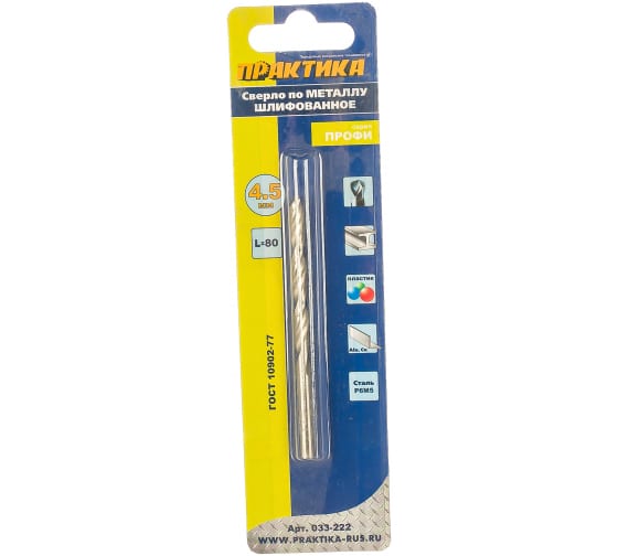 Сверло по металлу ПРАКТИКА 4,5x80 мм в Комсомольск-на-Амуре