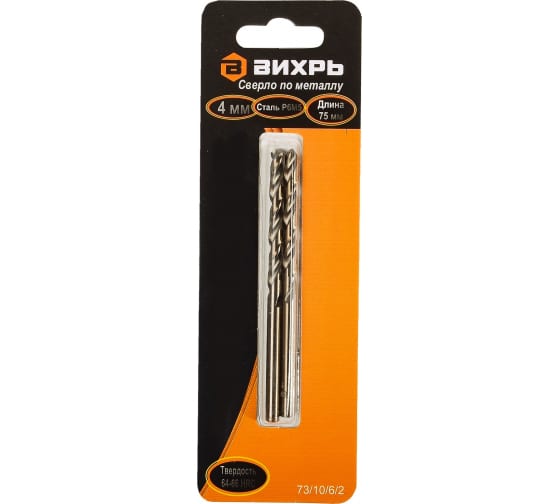 Сверло по металлу ВИХРЬ 4 мм, P6M5, 2 шт