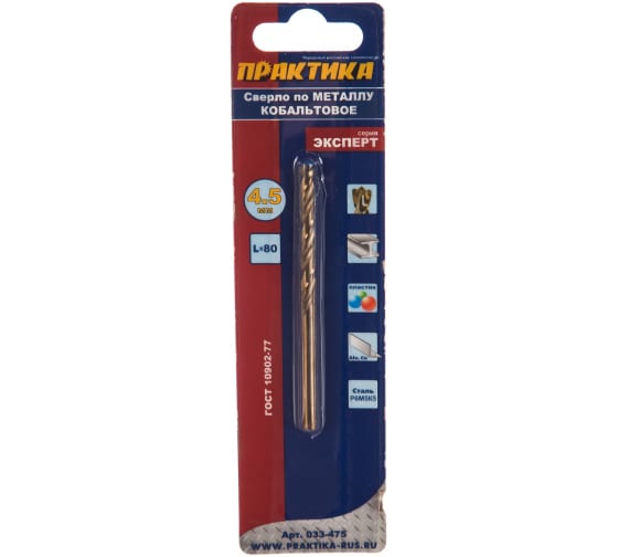 Сверло по металлу ПРАКТИКА кобальтовое 4,5х80 мм в Комсомольск-на-Амуре