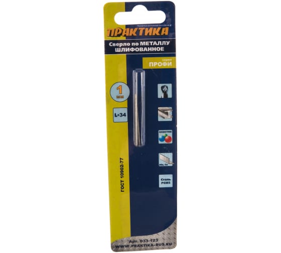 Сверло по металлу ПРАКТИКА 1,0x34 мм, 2шт в Комсомольск-на-Амуре
