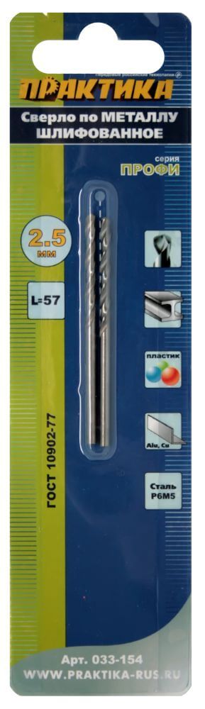 Сверло по металлу ПРАКТИКА 2,5*57мм, 2шт в Комсомольск-на-Амуре