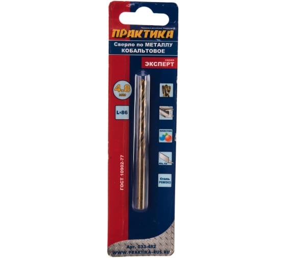 Сверло по металлу ПРАКТИКА кобальтовое 4,8х86 мм в Комсомольск-на-Амуре