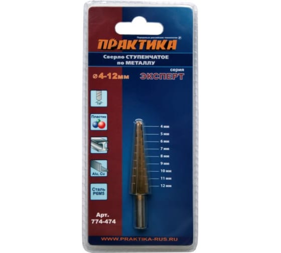 Сверло по металлу ступенчатое ПРАКТИКА 4-12 мм шаг 1 мм в Комсомольск-на-Амуре