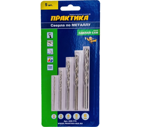Набор сверл по металлу ПРАКТИКА "Сделай сам", 5 шт 2, 3, 4, 5, 6 мм