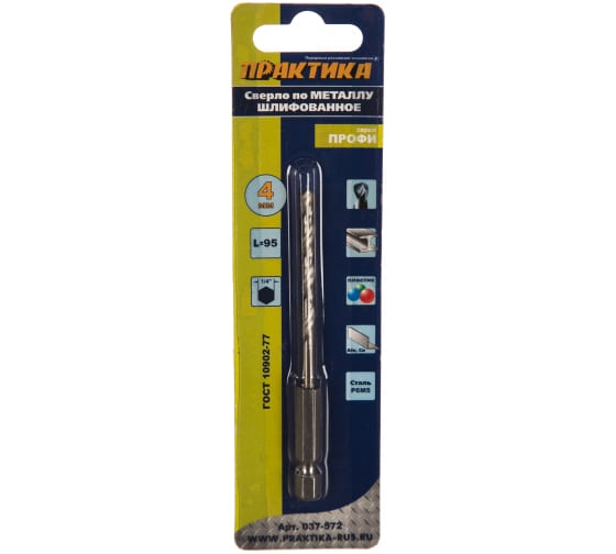 Сверло по металлу ПРАКТИКА HEX 1/4" 4,0х95 мм в Комсомольск-на-Амуре