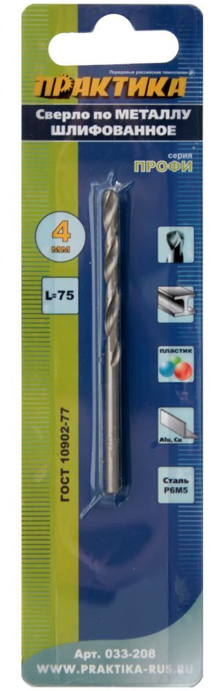 Сверло по металлу ПРАКТИКА 4,0*75мм в Комсомольск-на-Амуре