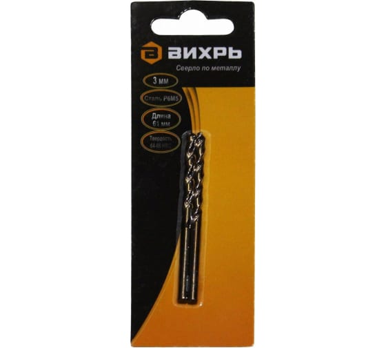 Сверло по металлу ВИХРЬ 3 мм, P6M5, 2 шт