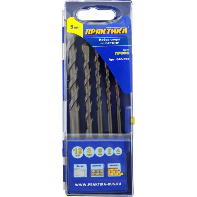 Набор сверл по бетону ПРАКТИКА, 5 предметов в Комсомольск-на-Амуре