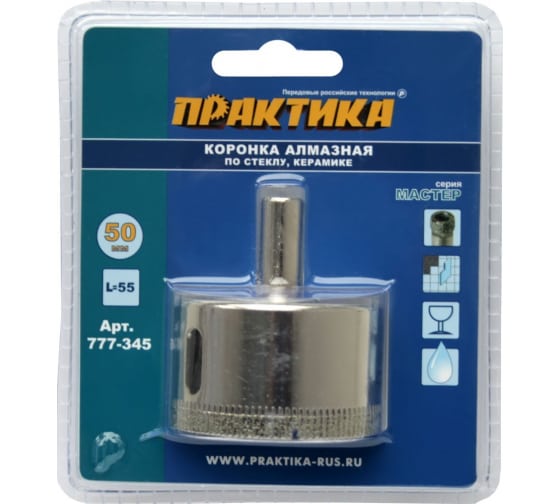 Коронка алмазная по стеклу и керамике ПРАКТИКА "Мастер" 50 мм в Комсомольск-на-Амуре
