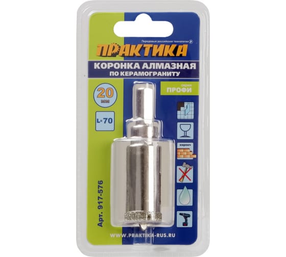 Коронка алмазная ПРАКТИКА по керамограниту/керамике 20 мм, пилотное сверло Профи в Комсомольск-на-Амуре