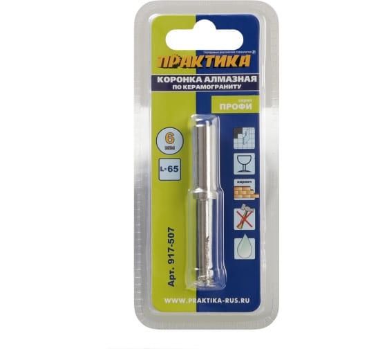 Коронка алмазная ПРАКТИКА по керамограниту/керамике 6 мм Профи в Комсомольск-на-Амуре