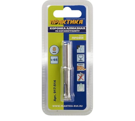 Коронка алмазная ПРАКТИКА по керамограниту/керамике 8 мм Профи в Комсомольск-на-Амуре