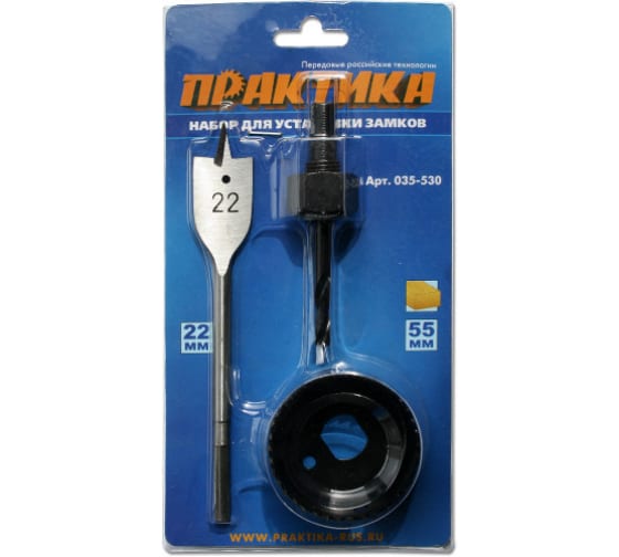 Набор для установки замков ПРАКТИКА коронка 55х20 мм, перовое сверло 22 мм в Комсомольск-на-Амуре