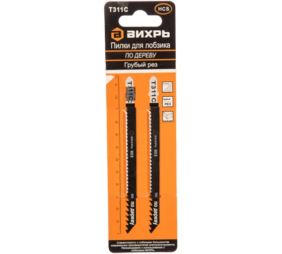 Пилки для лобзика ВИХРЬ Т311C по дереву,грубый рез 126х100мм, 2шт в Комсомольск-на-Амуре