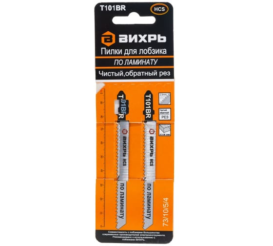 Пилки для лобзика ВИХРЬ Т101ВR по ламинату,чистый,обратный рез 100х75мм, 2шт