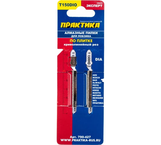 Пилки для лобзика по плитке ПРАКТИКА тип T150DIO 76х50 мм, криволинейный рез, АЛМАЗНЫЕ, 2шт в Комсомольск-на-Амуре