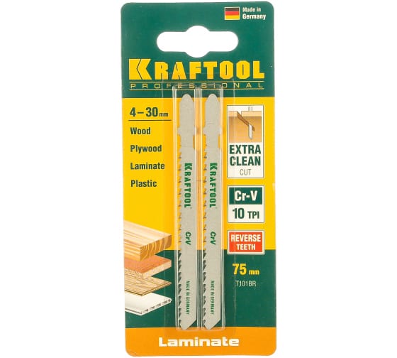 Пилки для лобзика по ламинату KRAFTOOL T101BR, обратный рез, 75мм, 2шт. в Комсомольск-на-Амуре