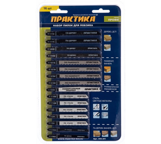 Набор пилок для лобзика ПРАКТИКА универсальный, 8 типов, 16 шт в Комсомольск-на-Амуре
