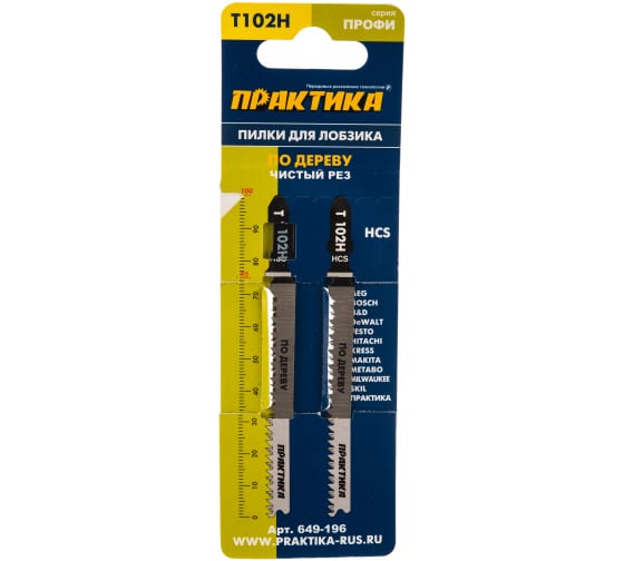Пилки для лобзика по дереву, ДСП ПРАКТИКА тип T102H 100х75 мм, чистый рез, 2шт в Комсомольск-на-Амуре