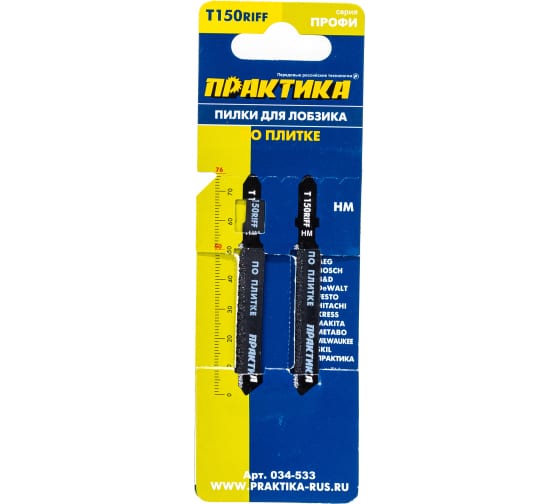 Пилки для лобзика по плитке ПРАКТИКА тип T150RIFF 76х50 мм, чистый рез, HM, 2шт в Комсомольск-на-Амуре