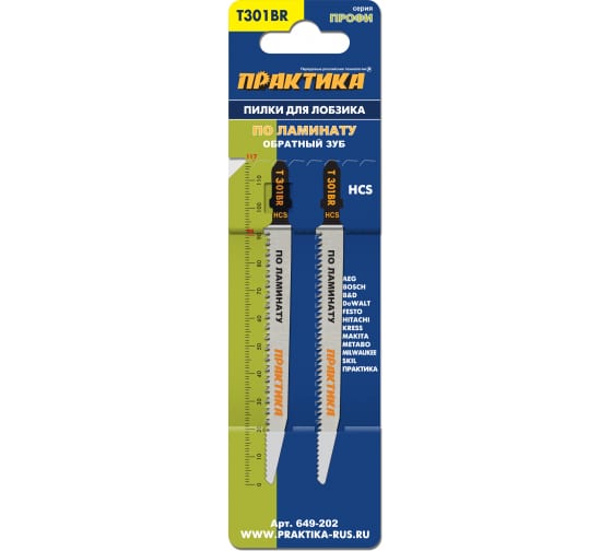 Пилки для лобзика по ламинату ПРАКТИКА дереву, ДСП, тип T301BR 117х91 мм, обратный зуб, HCS, 2шт в Комсомольск-на-Амуре