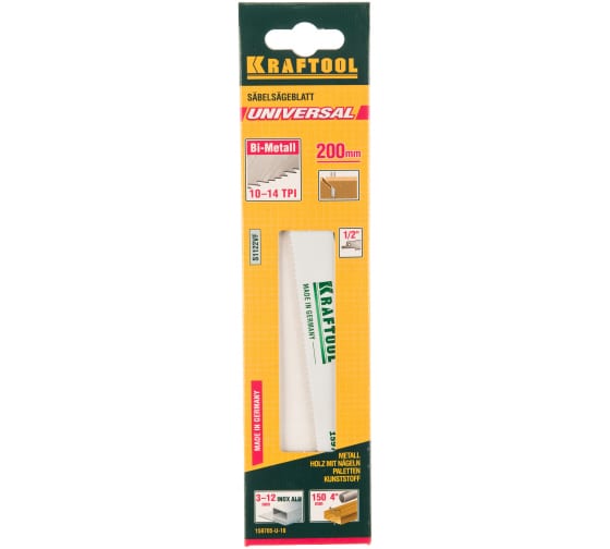 Усовершенствованное полотно для ножовки по металлу 159705-U-18 компании KRAFTOOL подходит для распиливания заготовок из металла повышенной твердости. Современный материал обладает увеличенной прочностью,выдерживает высокие нагрузки и обеспечивает продолжительную работу. Полотно KRAFTOOL "INDUSTRIE QUALITAT",S1122VF,для эл/ножовки,Bi-Metall,по металлу,дереву,шаг 1,8-2,5мм,180мм