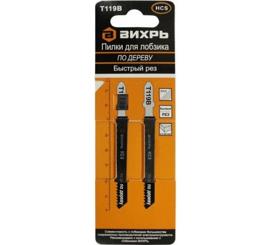Пилки для лобзика ВИХРЬ Т119В по дереву,быстрый рез 76х50мм, 2шт в Комсомольск-на-Амуре