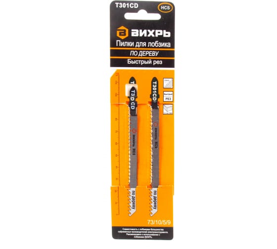 Пилки для лобзика ВИХРЬ Т301CD по дереву,быстрый рез 116х90мм, 2шт в Комсомольск-на-Амуре