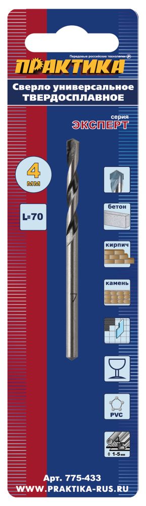 Сверло универсальное ПРАКТИКА 4*70мм в Комсомольск-на-Амуре