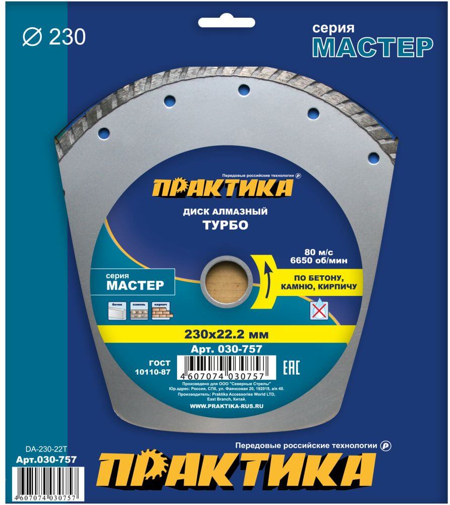 Диск алмазный турбированный ПРАКТИКА "Мастер" 230x22 мм коробка в Комсомольск-на-Амуре