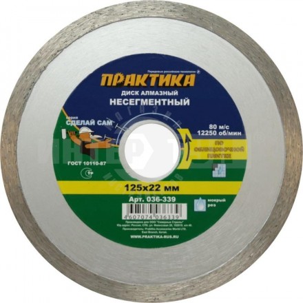 Диск алмазный несегментный ПРАКТИКА "Сделай Сам" 125х22 мм для керамической плитки в Комсомольск-на-Амуре