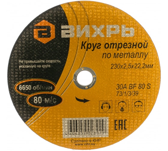 Круг отрезной по металлу ВИХРЬ 230х2,5х22 мм в Комсомольск-на-Амуре
