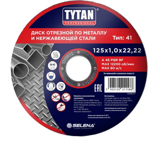Круг отрезной по металлу и нерж. стали TYTAN Professional 125х1,0х22,22 в Комсомольск-на-Амуре
