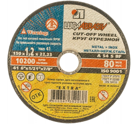 Круг отрезной по металлу и нерж. ЛУГА Extra 150*1,2*22мм в Комсомольск-на-Амуре