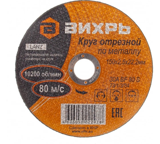 Круг отрезной по металлу ВИХРЬ 150х2,5х22 мм в Комсомольск-на-Амуре