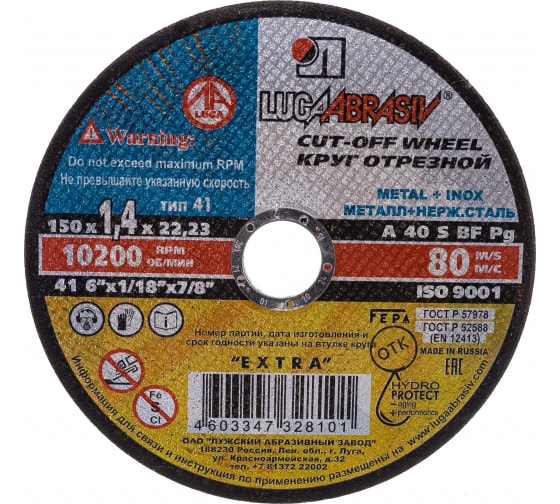Круг отрезной по металлу и нерж. ЛУГА Extra 150*1,4*22мм в Комсомольск-на-Амуре