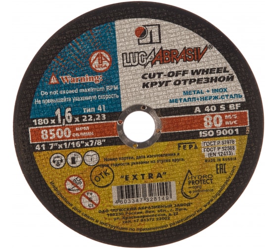 Круг отрезной по металлу и нерж. ЛУГА Extra180*1,6*22мм в Комсомольск-на-Амуре
