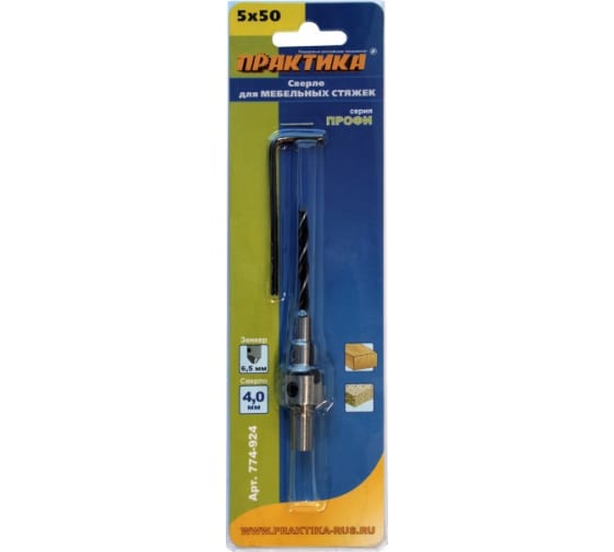 Сверло для мебельных стяжек ПРАКТИКА 5х50 мм