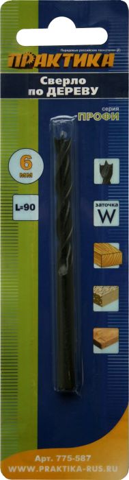 Сверло по дереву ПРАКТИКА спиральное 6*90мм в Комсомольск-на-Амуре