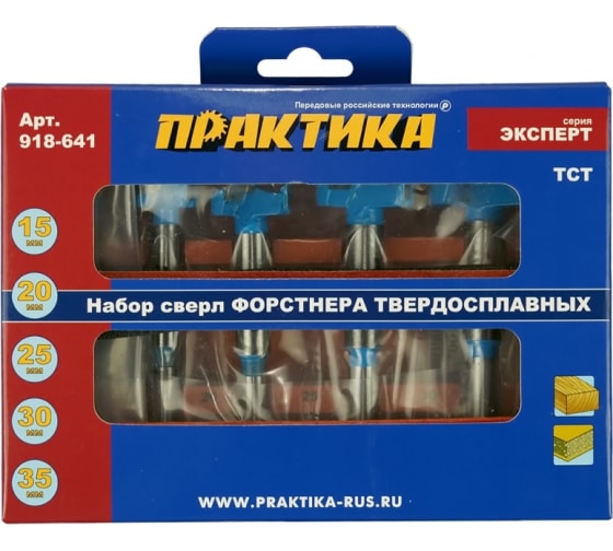 Набор сверл Форстнера ПРАКТИКА 5шт, твердосплавных 15, 20, 25, 30, 35 мм, в дер. кейсе в Комсомольск-на-Амуре
