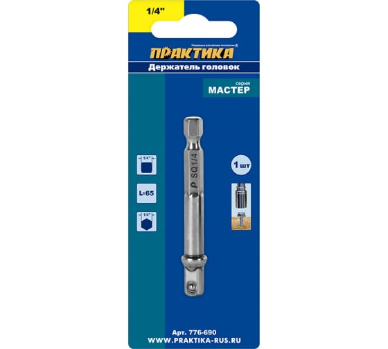 Держатель для головок ПРАКТИКА 1/4", длина 65 мм в Комсомольск-на-Амуре