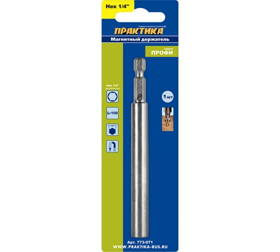 Удлинитель ПРАКТИКА магнитный держатель 100мм для бит 1/4" цельнотянутый в Комсомольск-на-Амуре