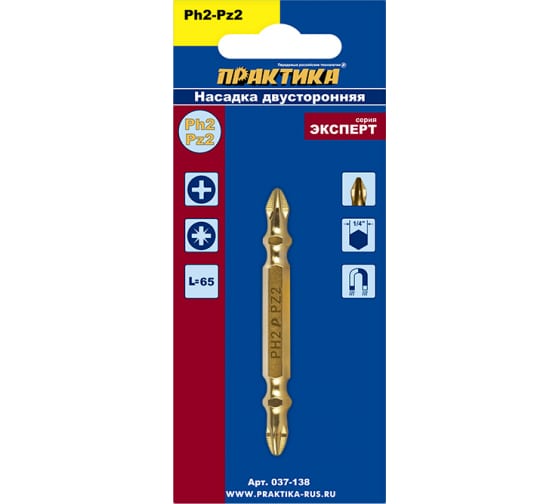 Бита отверточная ПРАКТИКА "Эксперт" двусторонняя PH-2 / PZ-2 х 65 мм Tin в Комсомольск-на-Амуре