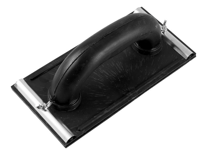 Материал: пластиковое основание, накладка из мягкой синтетической резины черного цвета, металлические зажимы для крепления абразивных материалов на терке. Применение: для финишной обработки, шлифовки и полировки различных поверхностей.