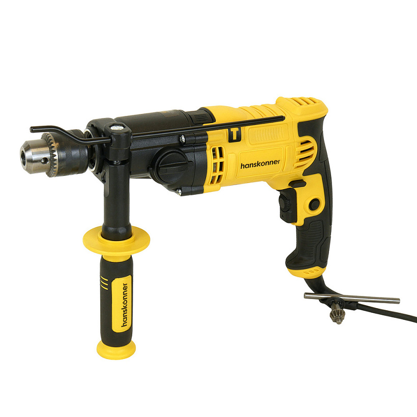 Дрель ударная Hanskonner HID21100DS — мощный электроинструмент, с кулачковым патроном и надежной конструкцией для сверления отверстий в таких материалах как: пластик, дерево, сталь, кирпич, легкий бетон. Данная модель оснащена двухскоростным редуктором, способствующим оптимальной подготовки к любой отдельно взятой задаче. В целях точного исполнения отверстий есть ограничитель глубины.