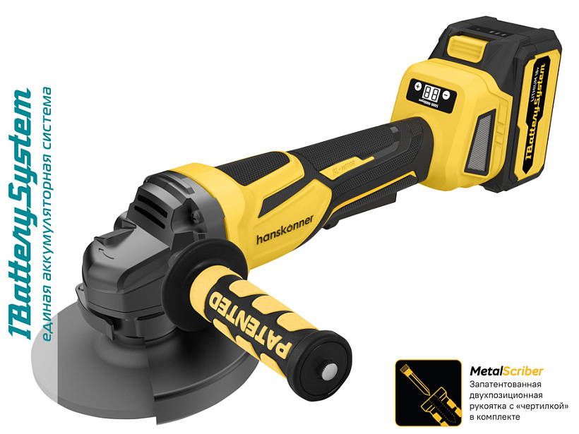 Шлифмашина угловая акк Hanskonner, 18В, 1BS,125 мм, б/щет, регулировка, 1*4Ач, кейс
